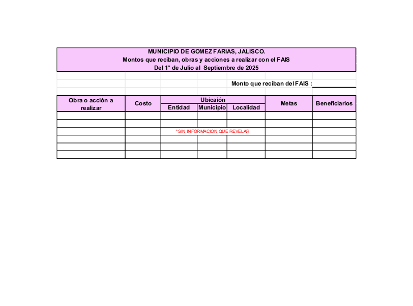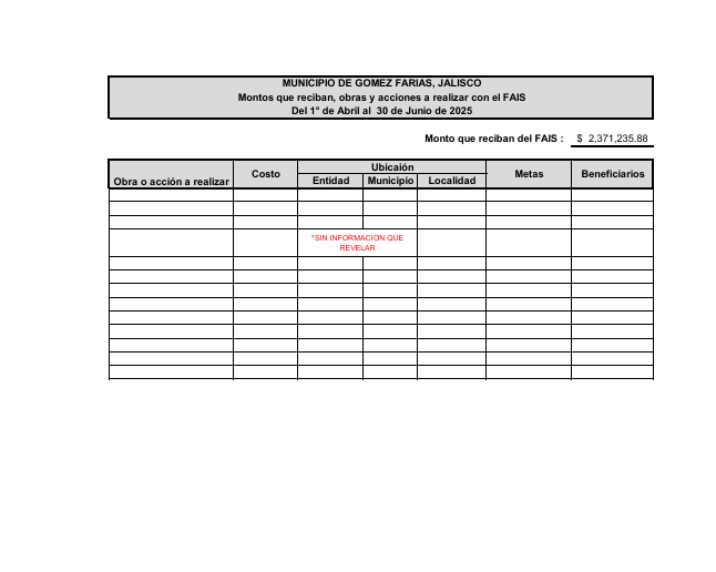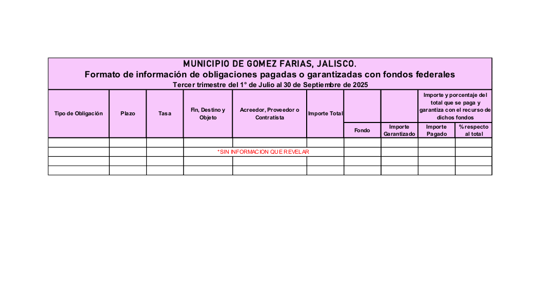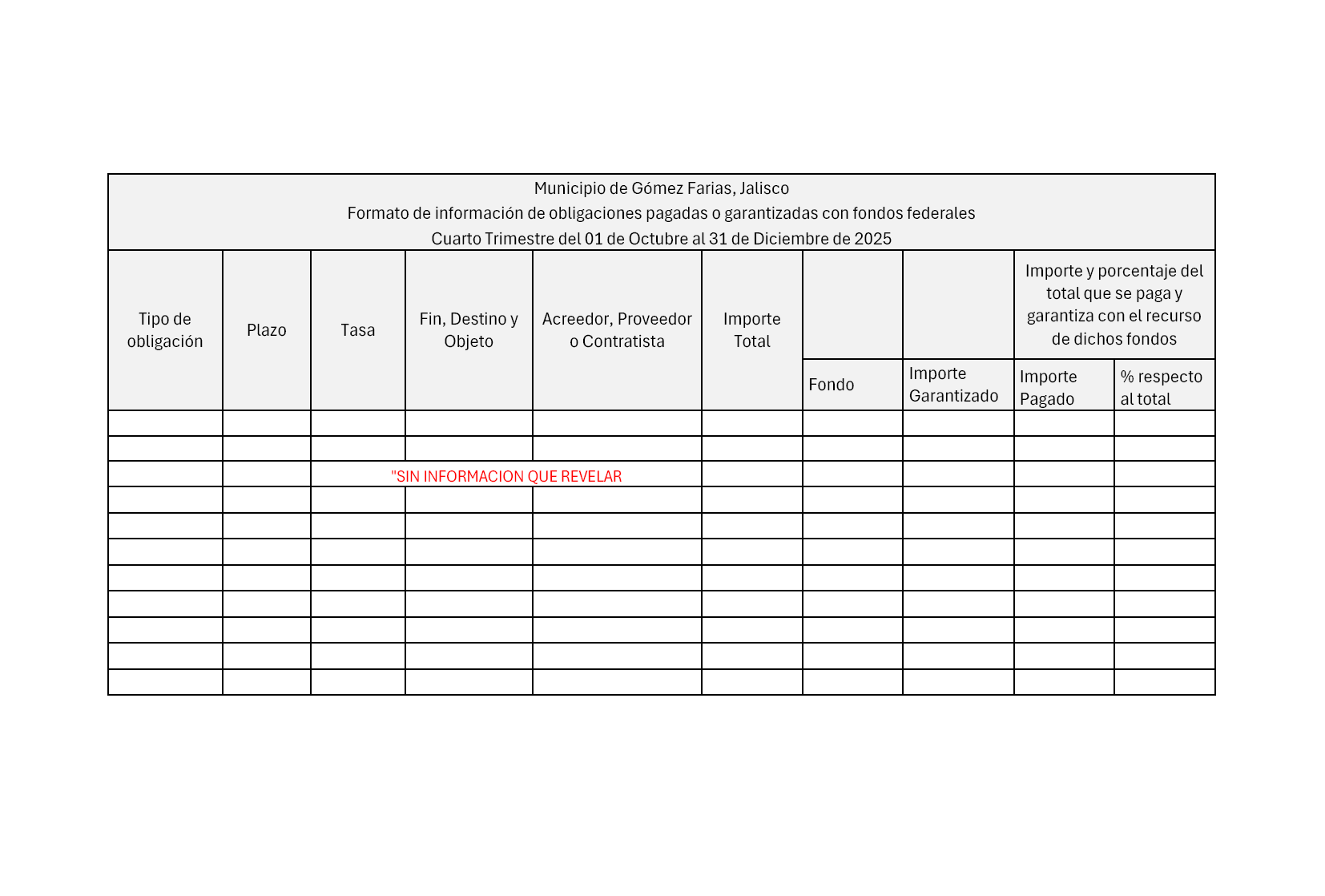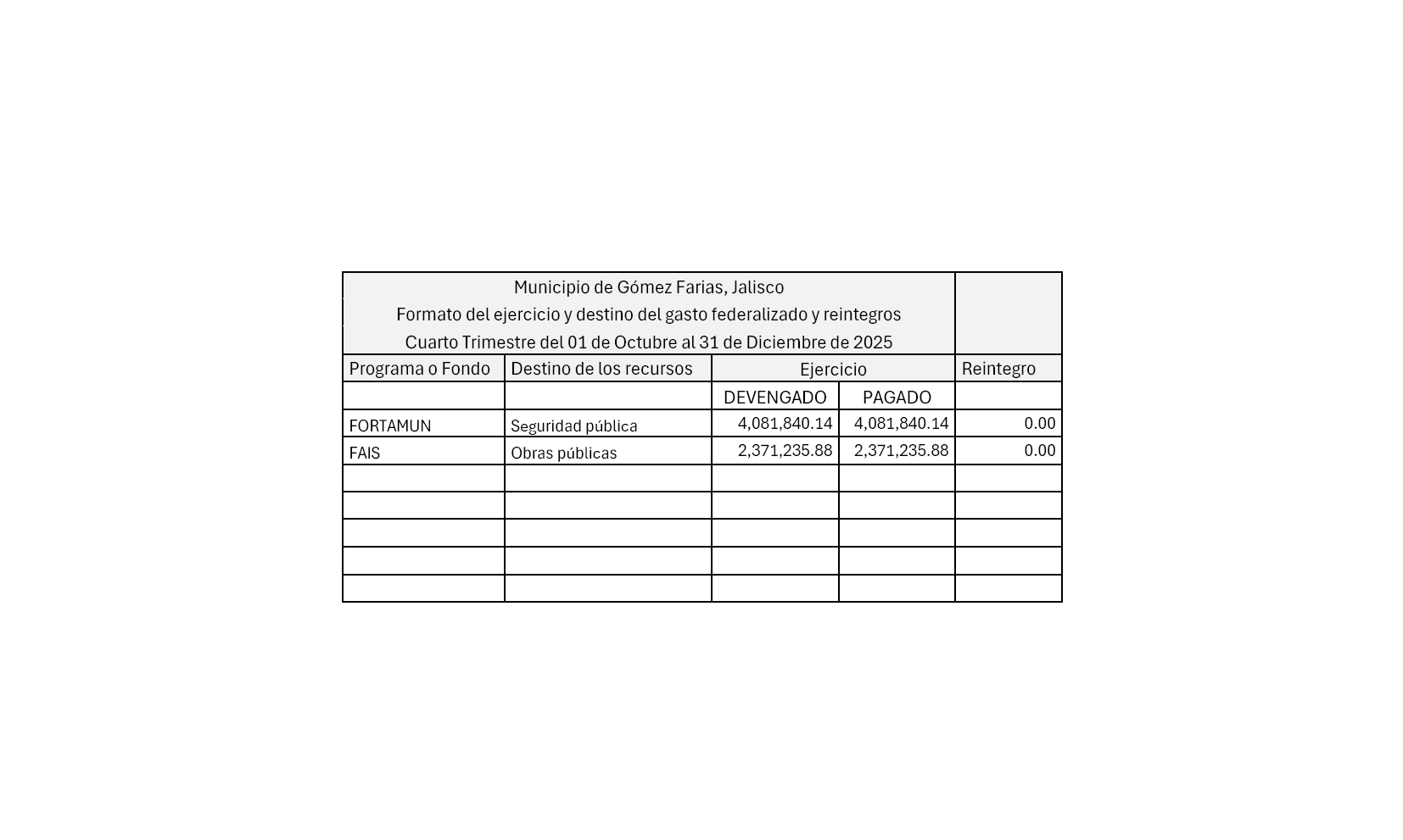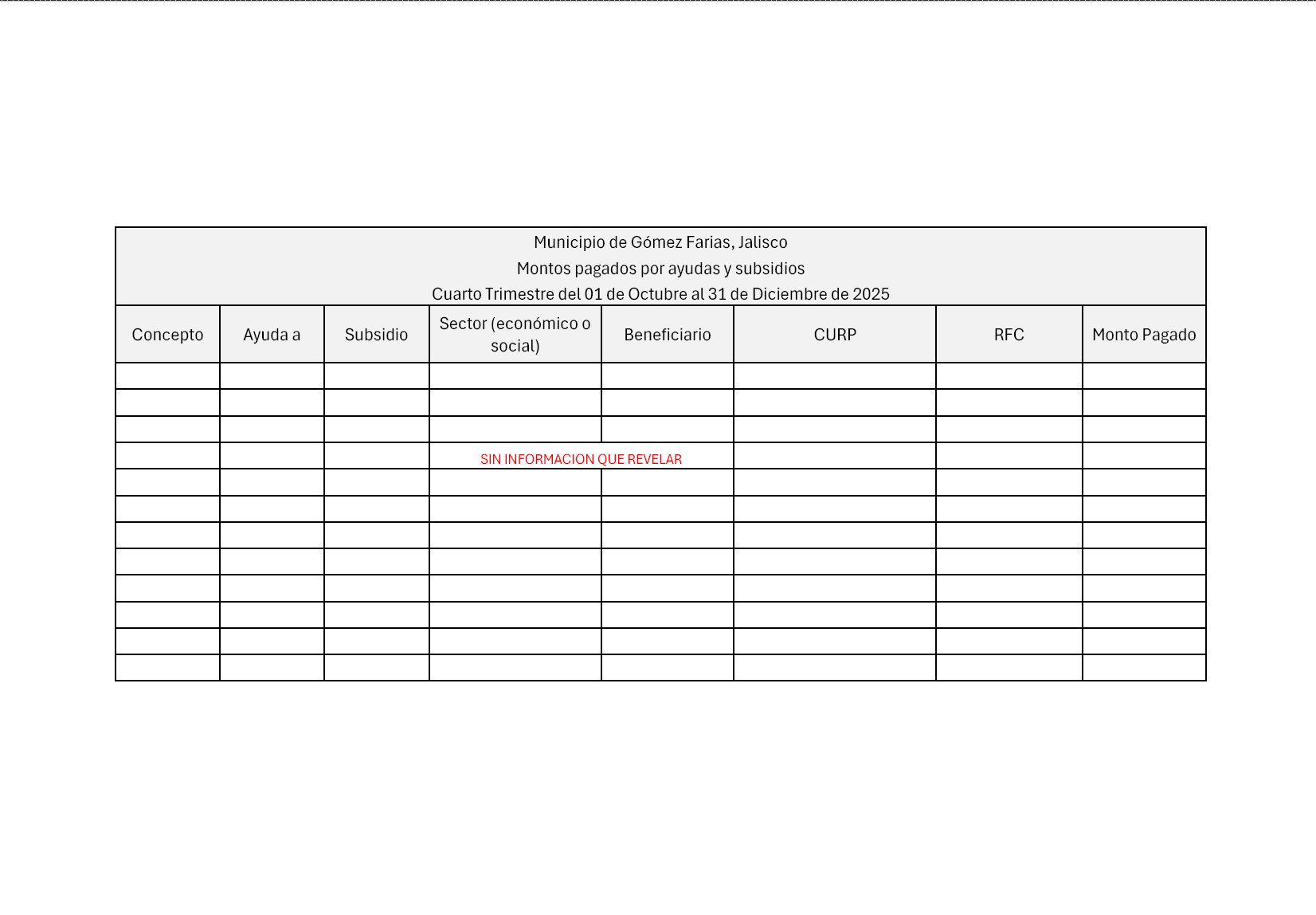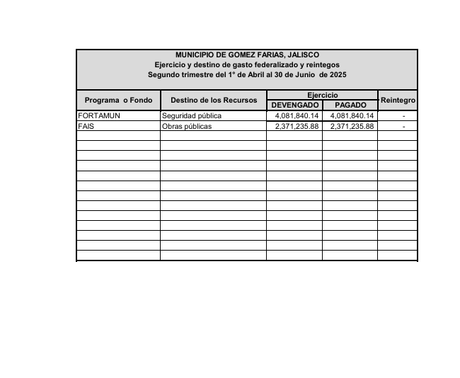 SEvAC Formato de Información Formato de Programas Montos Pagados por Ayuda Información de FORTAMU Ejercicos y Destino de Gastos Estado Analítico del Presupuesto Estados de Actividades Estado Analitico de Ingresos Estado de Situación Financiera Montos que reciben con el FAIS Libro de Inventarios de Bienes Relación de Cuentas Bancarias Montos Ayudas y Subcidios Programas con Recursos Concurrentes Montos para Obras o Acciones Aplicación de Recurosos del FORTAMUN Información de Obligaciones Gastos Federalizados y Reintegros 2025 Gastos Federalizados y Reintegros 2024 Estado de Actividades Estado de Situación Financiera Estado Analítico de Ingresos Presupuesto de Egresos Manual de Contabilidad Difusión de Resultados Finanzas Públicas Deuda Pública Ayudas y Subcidios Recursos Concurrentes Situación Económica, Finanzas y Deuda Pública FORTAMUN OCTUBRE/DICIEMBRE 2025 Obligaciones Pagadas con Fondos Federales Gasto Federalizado y Reintegros Caratula Web Manifiesto Informativo